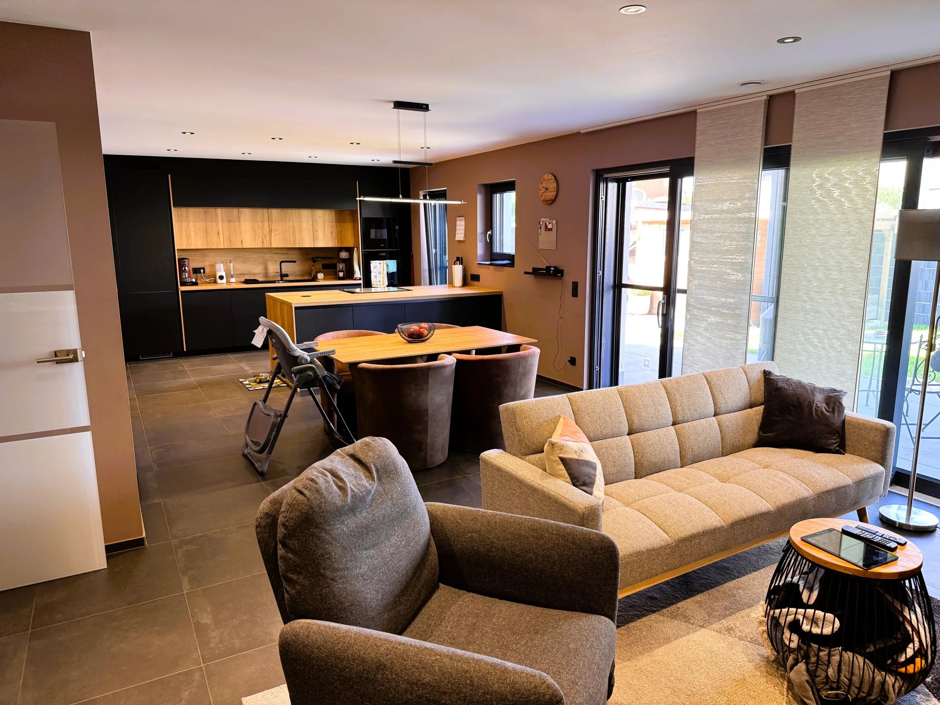 The real estate agency HOME INVEST offers you exclusively this beautiful, semi-detached modern and bright house, equipped with a photovoltaic system, offering a living area of approximately 149 sqm (total area approx. 325 sqm), situated on a plot of 3.49 ares (fully secured with fencing), spread over 4 levels, namely: