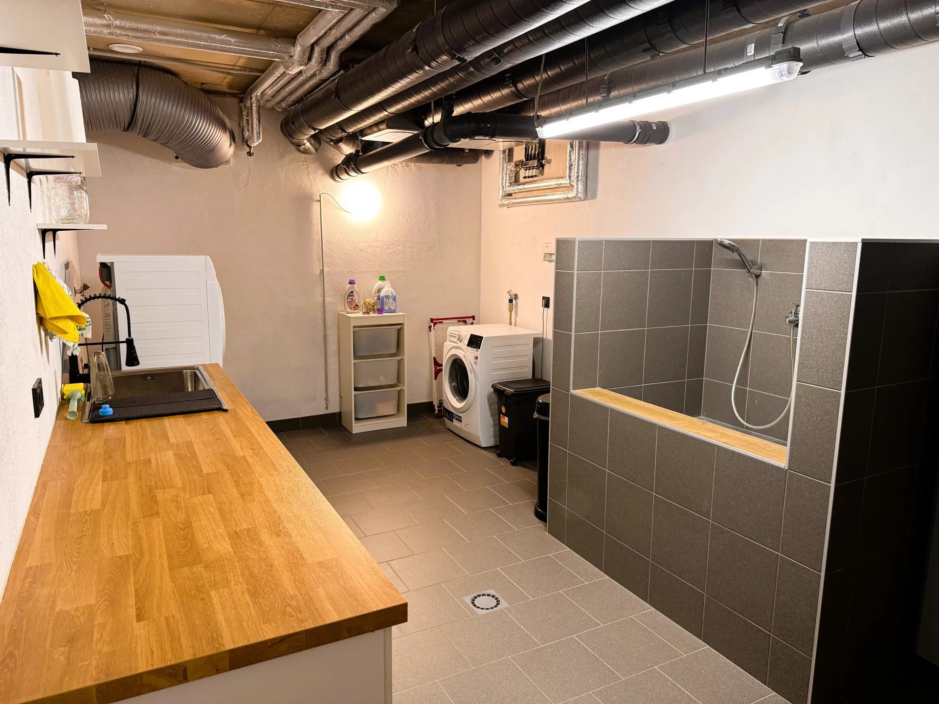 - a laundry room of approx. 17.85 sqm including a sink with cabinet, a base for the dryer, a washing machine connection, and a laundry basin,